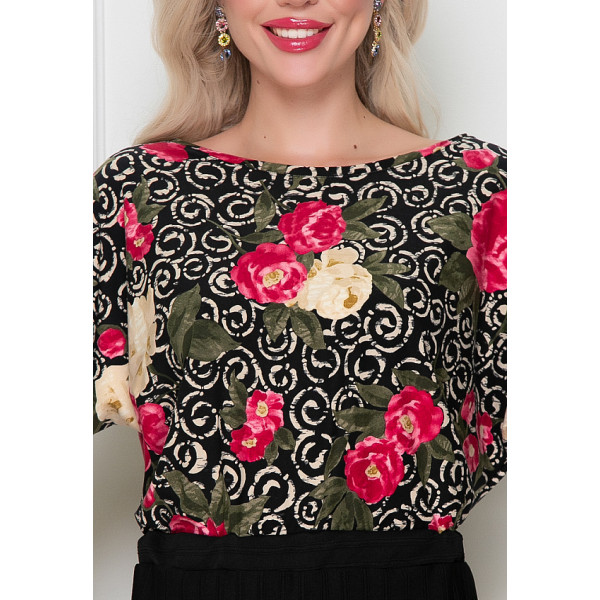 Лирина – платье полуприлегающего силуэта из принтованного плательного трикотажа. Вырез горловины классический овальный. Рукава 3/4 – “летучая мышь”. Благодаря поясу-резинке платье отлично садится по силуэту. Будьте яркой и привлекательной вместе с “5trend”!