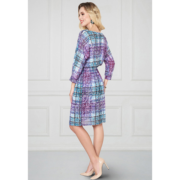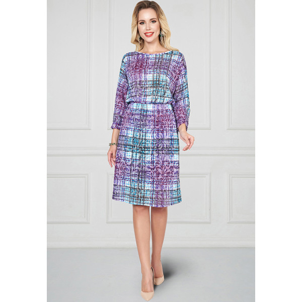 Лирина – платье полуприлегающего силуэта из принтованного плательного трикотажа. Вырез горловины классический овальный. Рукава 3/4 – “летучая мышь”. Благодаря поясу-резинке платье отлично садится по силуэту, а подъюбник придаст нижней части объем, что визуально стройнит фигуру. Будьте яркой и привлекательной вместе с “5trend”!