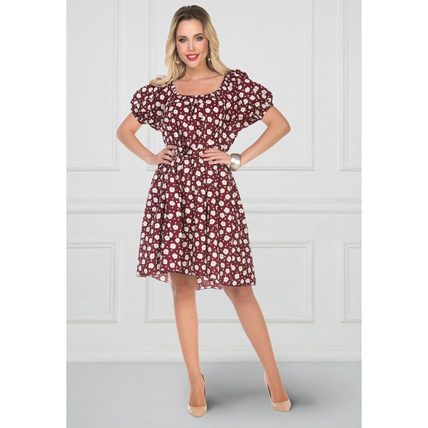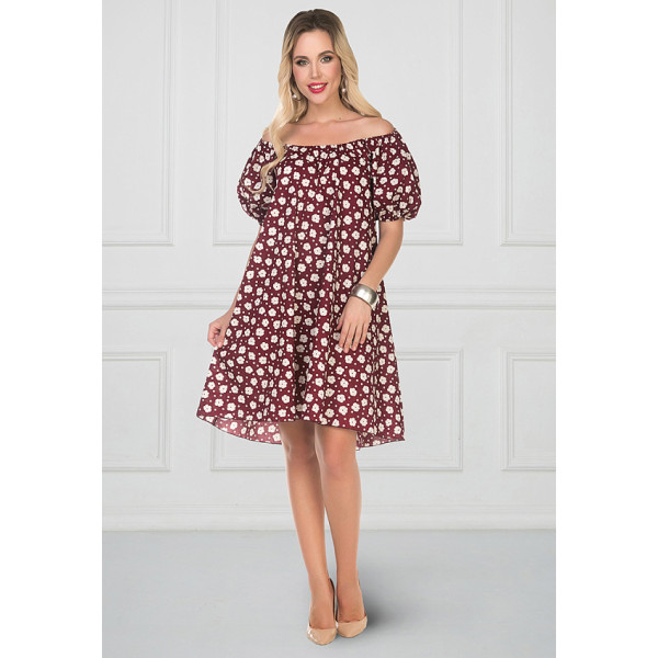 Ловере - нарядное платье трапецевидного силуэта из принтованного хлопка. Широкий вырез горловины, дает возможность двух вариантов образа: с открытыми и закрытыми плечами, что придаст вам нарядность и сексуальность. Рукава короткие - "фонарики". Юбка широкая, придающая объем - отлично стройнит фигуру. А элегантный декоративный пояс - выгодно подчеркивает талию. Будьте неотразимы и притягательны вместе с "5trend"! Рост модели: 172 см Длина изделия: 46 размер — 98,5 см 48 размер — 99 см 50 размер — 99,5 см 52 размер — 100 см 54 размер — 100,5 см