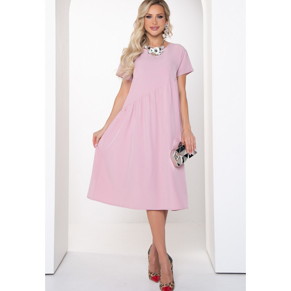 Лугано – стильное платье А-силуэта из однотонной плательной ткани. Вырез горловины классический овальный, обработан обтачкой. Рукава короткие, втачные. От груди до талии – фигурный подрез и декоративные сборки на юбке, что визуально стройнит фигуру и придает платью оригинальность. Будьте яркой и привлекательной вместе с “5trend”! Рост модели – 172 см Длина изделия: 46 размер — 113 см 48 размер — 114 см 50 размер — 115 см 52 размер — 116 см