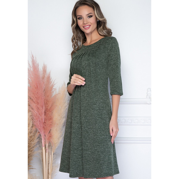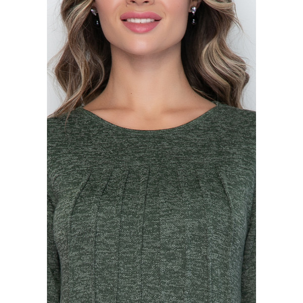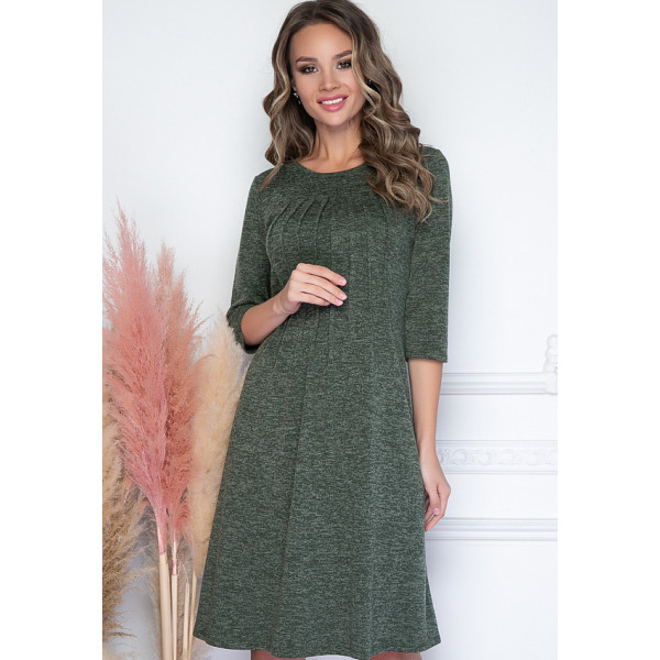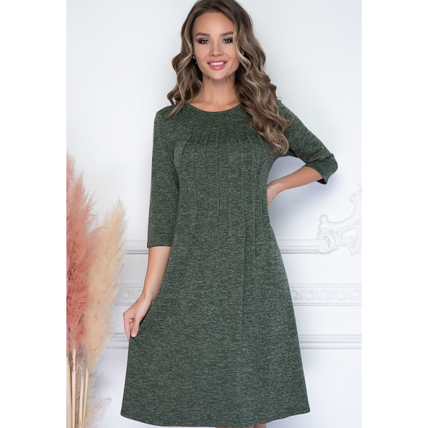 Миноль – элегантное нарядное платье из меланжевого трикотажа с декоративными сборками спереди. Вырез ворота – классический овальный. Рукава – втачные 3/4. Благодаря декоративным сборкам фигура становится визуально стройнее и сексуальней. Благодаря мягкому, приятному телу трикотажу вы будете чувствовать себя настоящей королевой. “5trend” рекомендует!