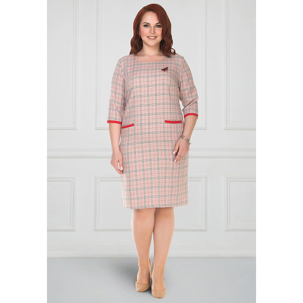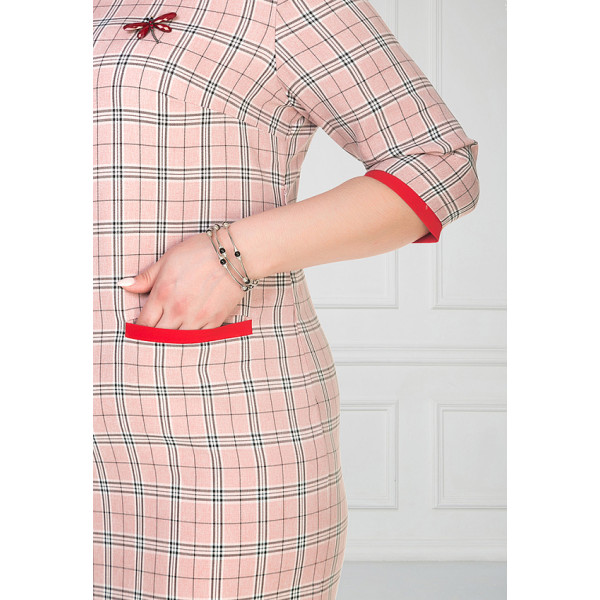 Мирадос - платье полуприлегающего силуэта из плательной ткани с принтом-клеткой. Спереди по бокам - прорезные карманы, отороченные по краям тесьмой контрастного цвета. Рукава - 3/4, также оторочены контрастными манжетами. В комплекте с платьем - элегантная брошь-"стрекоза". Будьте яркой и неотразимой вместе с "5trend"!