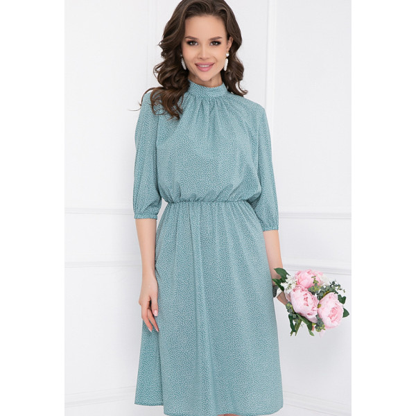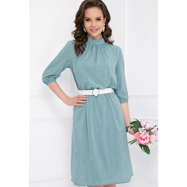 Невильяно – яркое платье свободного силуэта из плательной ткани с принтом. Вырез горловины классический округлый, декорирован воротником-стойкой с защипами по горловине. Рукава 3/4, втачные, оторочены резинками. Юбка отрезная по линии талии, на резинке. На спинке – функциональная пуговица-застежка. Пояс в комплект не входит. Будьте неподражаемой вместе с “5trend”!
