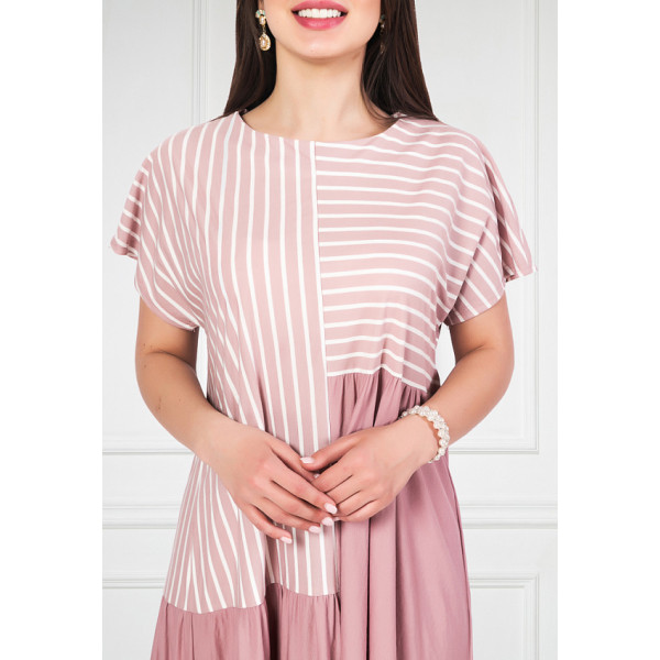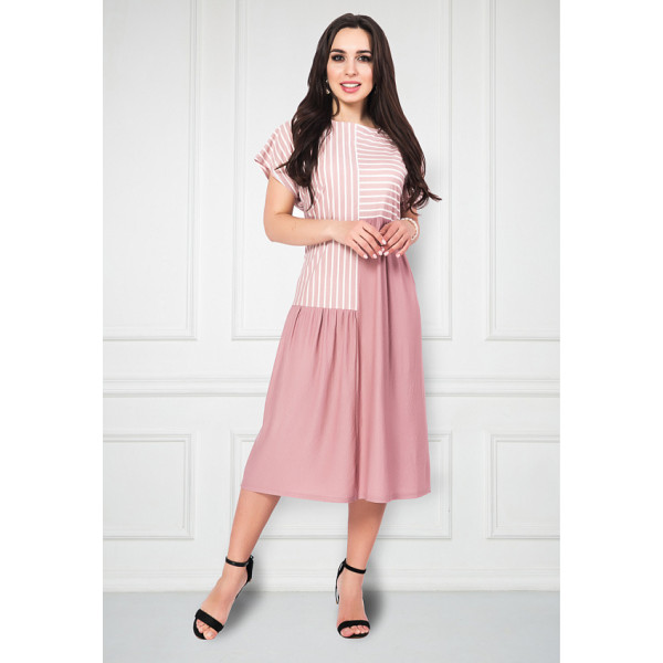 Раполло - платье полуприлегающего силуэта из легкой плательной ткани. Сочетание оригинальной комбинации принтованной ткани и ткани без рисунка визуально стройнит фигуру, а широкие цельнокроенные рукава придают вашему образу легкость и комфорт. Будьте стильной и привлекательной вместе с "5trend"!