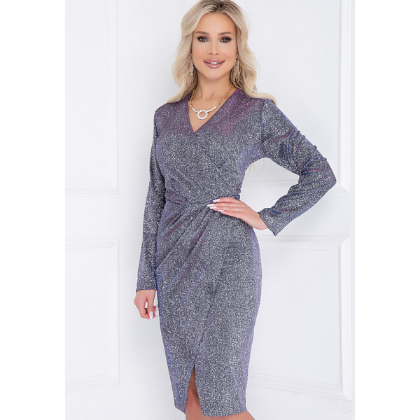 Сабио – нарядное платье полуприлегающего силуэта из трикотажа с добавлением глитера (блестки). Вырез горловины – V-образный, формируемый запахом на груди. Спереди декоративные сборки, которые стройнят фигуру и придают платью фактурность. Рукава длинные, втачные. Выглядеть умопомрачительно, быть в центре внимания легко вместе с “5trend”!