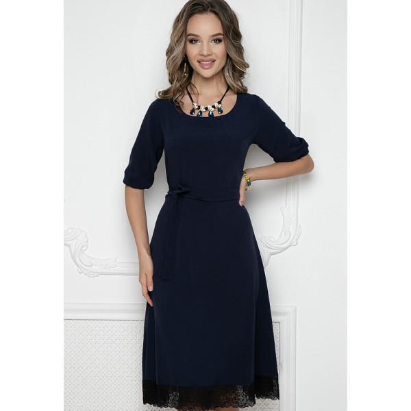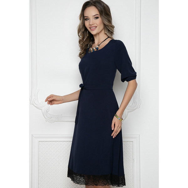 Синэлла- элегантное приталенное платье из плательной ткани с пояском на талии. Округлый ворот, рукава 3/4 на резинке. Низ обрамлён нежным кружевом. Платье Синэлла подчеркивает изящность, а кружево добавляет нежности и изысканности образу. Будь привлекательной с "Bellovera!" Рост модели: 172 см Длина изделия: 46 размер — 96 см 48 размер — 97 см 50 размер — 97 см 52 размер — 98 см 54 размер — 99 см 56 размер — 100 см
