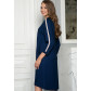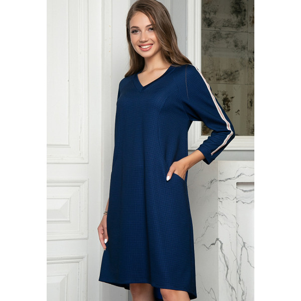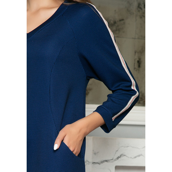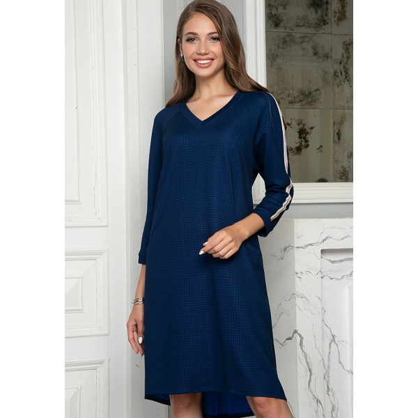 «Тенденза» — платье трапецевидного покроя из легкого трикотажа. Рукава декорированы оригинальной тесьмой-лампасами, оторочены манжетами. Вырез ворота V-образный. Спереди - прорезной карман. Подол - асимметричный. В таком платье вы будете себя чувствовать комфортно практически в любой обстановке. Будьте стильной вместе с «5trend»!