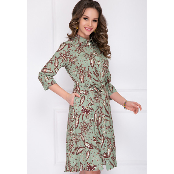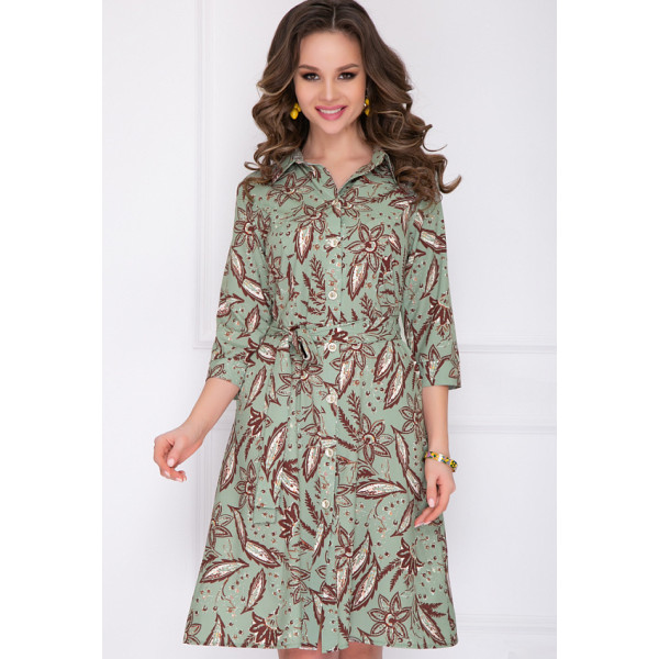 Тиана - платье полуприлегающего силуэта из плательной ткани с принтом. Спереди - застежки на пуговицах по всей длине. Воротничок классический, отложной. Рукава 3/4, втачные. В комплекте с платьем поставляется декоративный пояс. Будьте яркой и привлекательной вместе с "5trend"! Рост модели - 172 см Длина изделия: 46 размер — 104,5 см 48 размер — 105,5 см 50 размер — 105,5 см 52 размер — 105,5 см 54 размер — 106 см