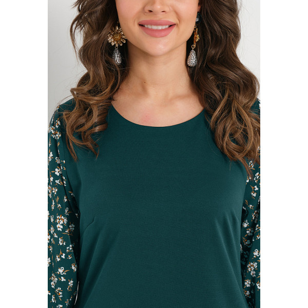 Тонарио – платье полуприлегающего силуэта из комбинированных тканей: трикотаж и плательный трикотаж. Благодаря сочетанию однотонной и принтованной ткани ваш образ будет особенно нарядным. Низ платья со сборками. Рукава длинные, втачные. Вырез горловины классический овальный. По бокам – декоративные пуговицы. Быть нарядной и неотразимой легко вместе с “5trend”! Длина изделия: 46 размер — 99 см 48 размер — 99 см 50 размер — 101 см 52 размер — 101 см 54 размер — 102 см 56 размер — 102 см