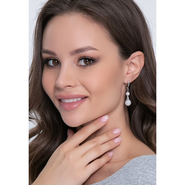 Гелла - серьги ручной работы из бусин натурального белого агата размером 10 и 6 мм. Фурнитура цвета "тибетское серебро". Швензы с родированием (гипоаллергенны, не темнеют). Быть стильной и неповторимой легко вместе с "5trend"!
