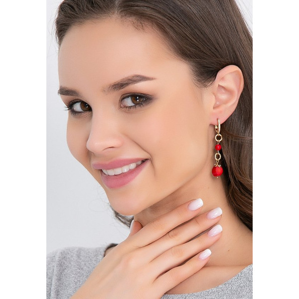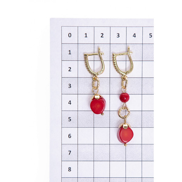 Пестума - стильные асимметричные серьги с бусинами натурального коралла размером 6 и 9*10 мм. Коралл - символ долголетия. Швензы с фианитами с английской застежкой. Фурнитура цвета "золото". Радуйте окружающих и себя вместе с "5trend"!