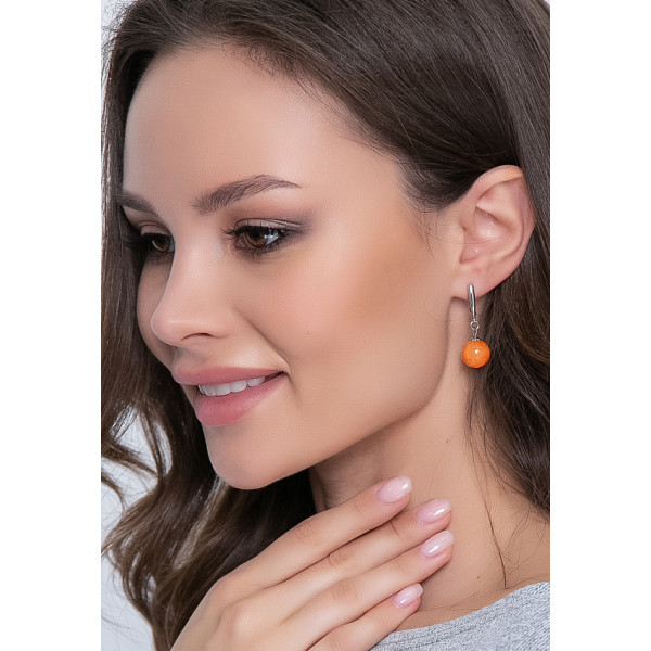 Викия - серьги ручной работы с бусинами натурального кальцита оранжевого цвета размером 12 мм. Фурнитура класса "люкс" с родированием (гипоаллергенна, не темнеет). Швензы с английской застежкой. Будьте яркой вместе с "5trend"!